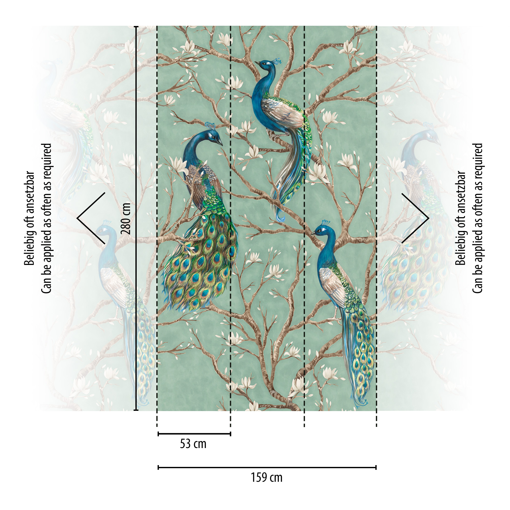 79223-9 Панно AS Creation 159*280, Павлины в цветущем саду