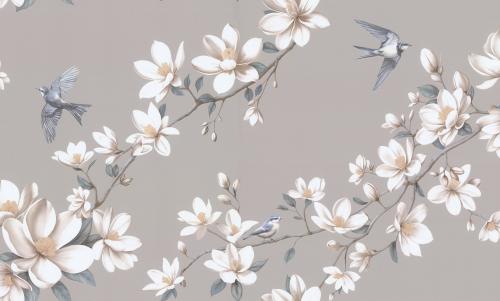 Авантажную тему обоев Magnolia (Магнолия) составляют изящные соцветия магнолии и веселое щебетание порхающих в воздухе птиц – весенний мотив, который наполнен светлой радостью от пробуждения природы.Фотореалистичная прорисовка лепестков и ветвей выполнена таким образом, что повторение графичного узора становится незаметным. После поклейки полотна обоев выглядят как цельное художественное панно, нарисованное кистью живописца.